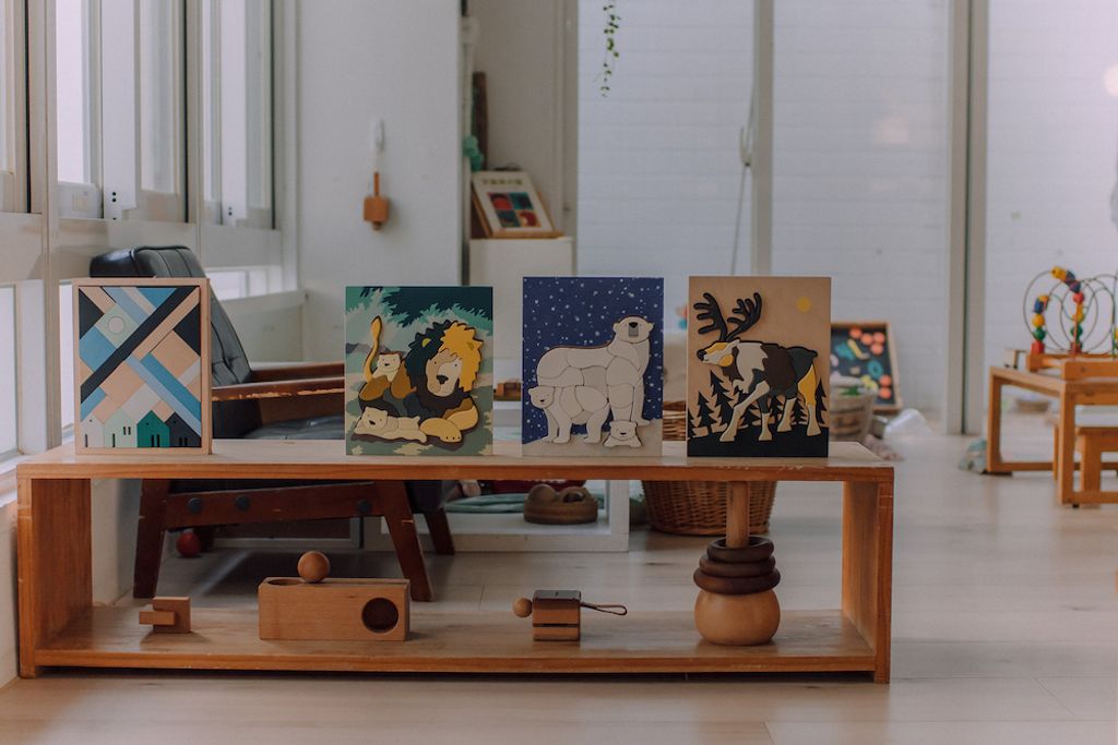 木質拼圖, 將動物帶進孩子的世界,使用厚度近二公分的木材製成,方便孩子的小手抓握。天然的木頭觸感,賞心悅目的色彩。